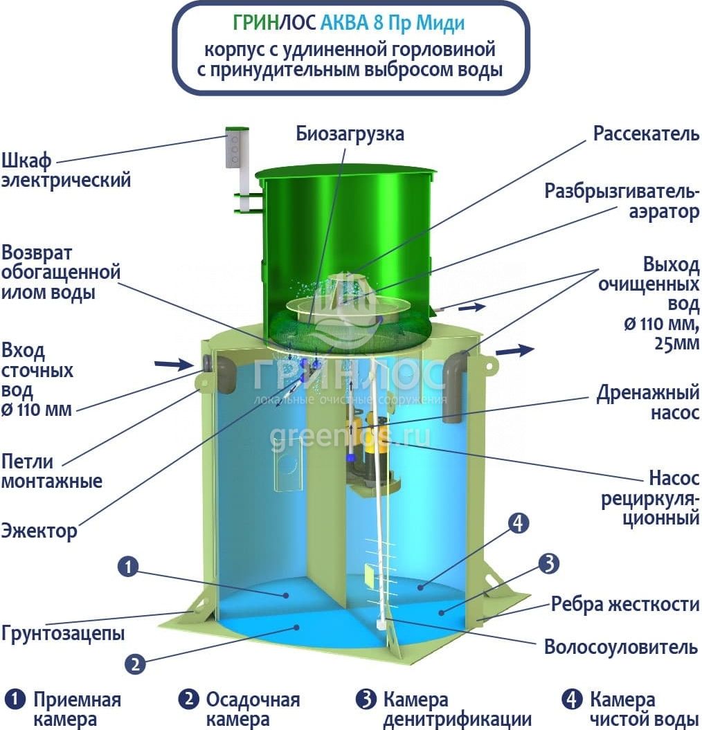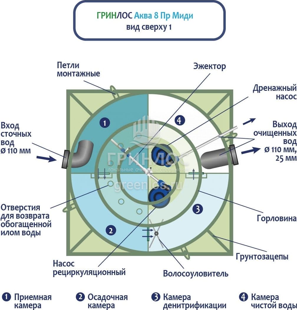 Модификации септика ГРИНЛОС Аква 8 Миди