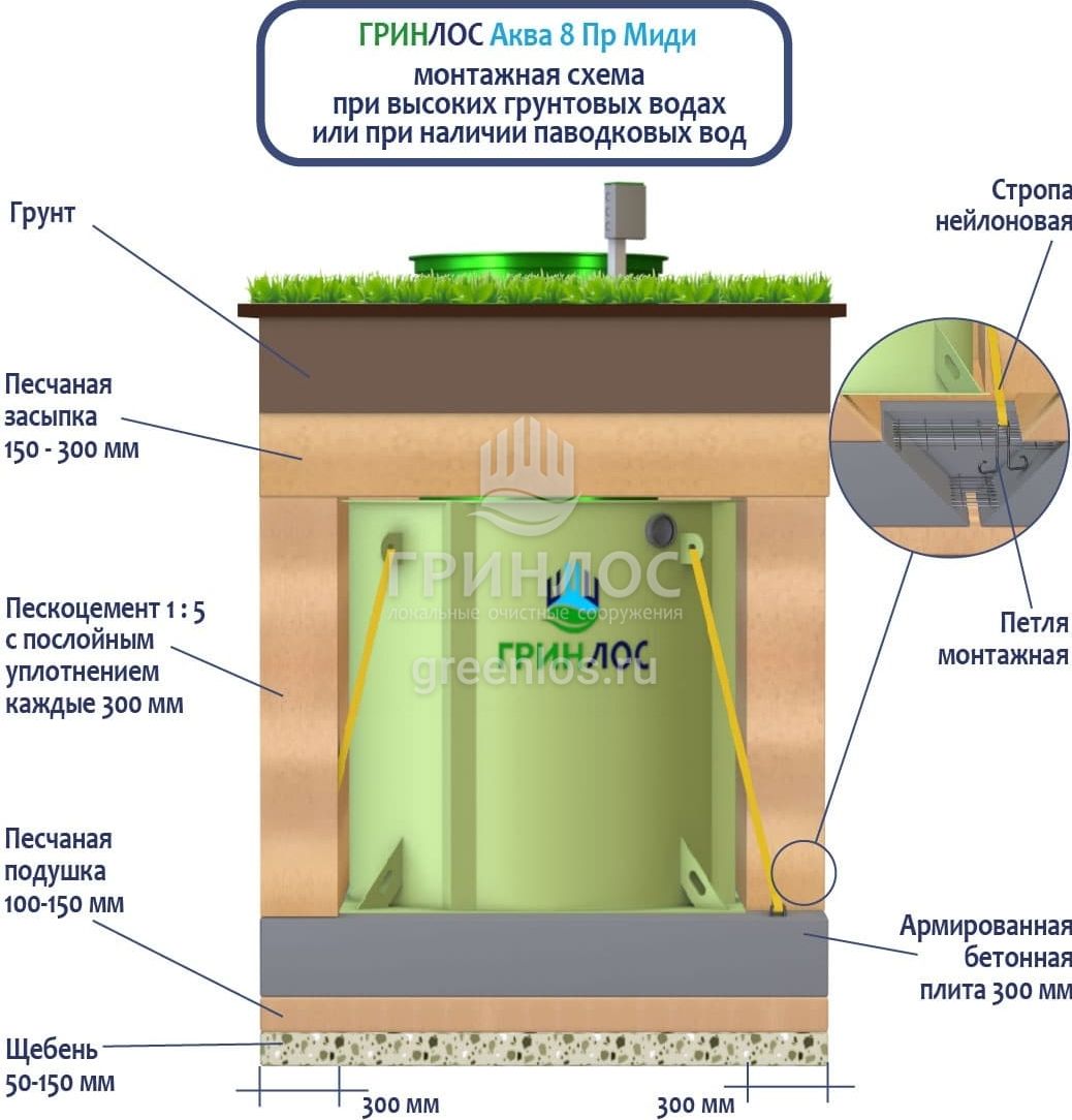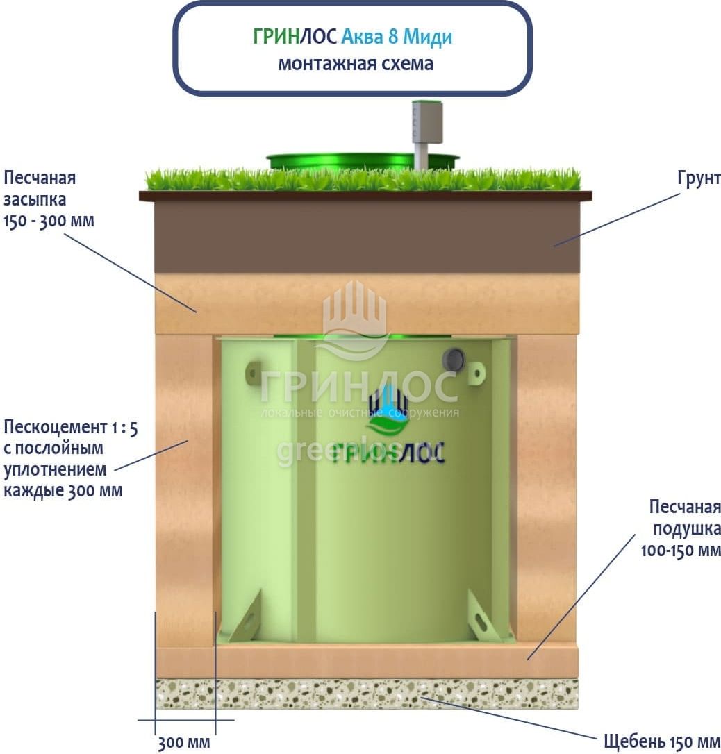 Монтаж септика ГРИНЛОС Аква 8 Миди