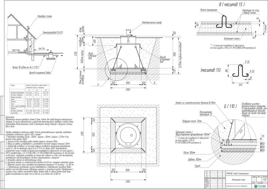 Целесообразно доверить выбор и монтаж оборудования специализированной компании. Перед непосредственным монтажом Оборудования специалисты осуществляют подготовку котлована. Его размеры определяются конструктивными особенностями выбранной модели оборудования. Ознакомиться с данными параметрами можно в приложении к ПС. По боковым стенкам корпуса должно быть сохранено свободное расстояние до грунта не менее 250 мм. Дно котлована нуждается в более тщательной подготовке. Его подвергают выравниванию с последующей засыпкой слоем песка, обладающим толщиной в пределах 10-15 см. Пазухи котлована подвергают обратной засыпке при помощи песка, который послойно поливают водой. Прежде чем приступить к аналогичным работам, емкость оборудования на четверть заполняют водой. Впоследствии количество воды внутри емкости увеличивают соразмерно уровню засыпки песком наружных стенок. Каждые 200 мм песка подвергаются ручному уплотнению.