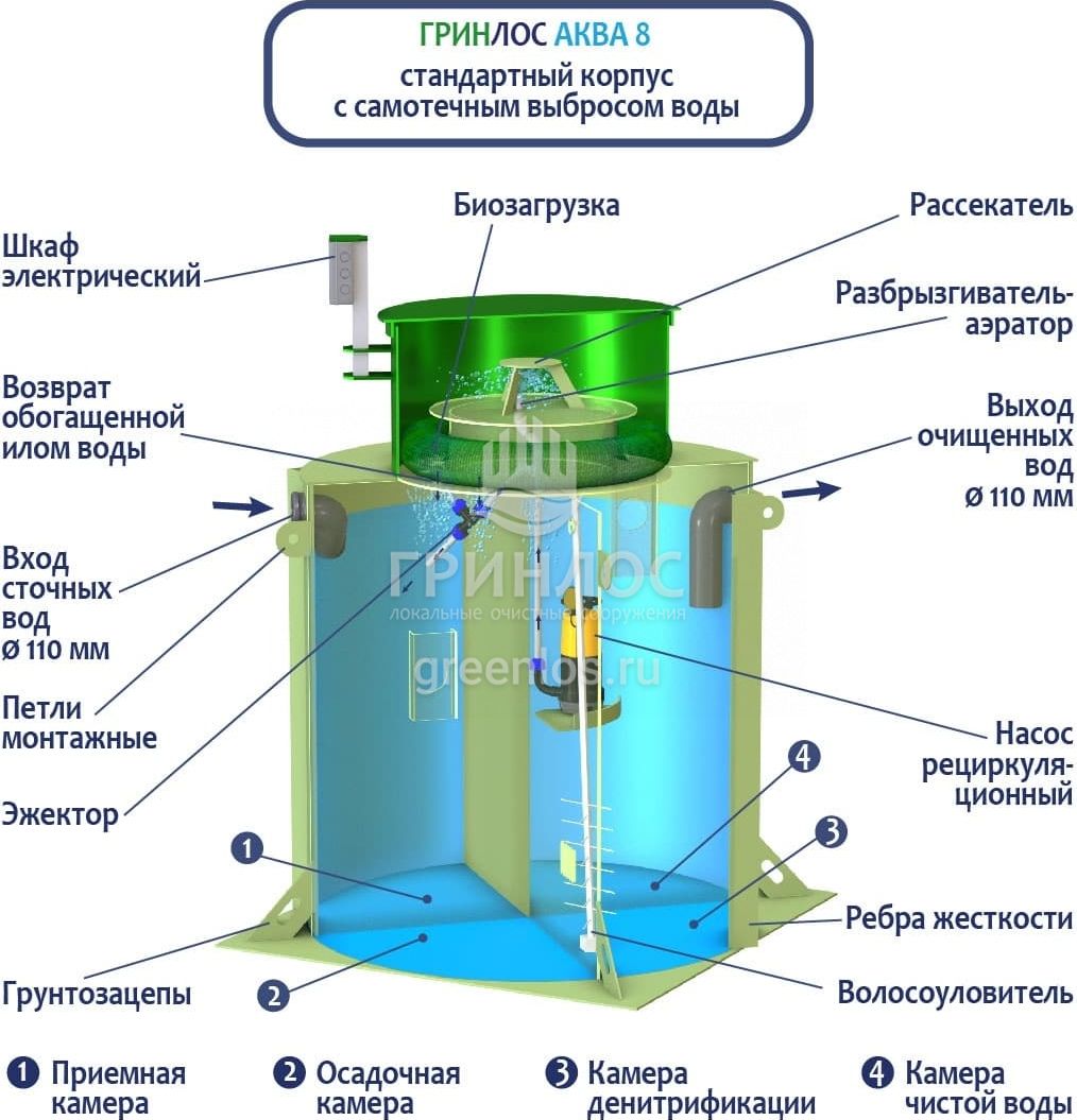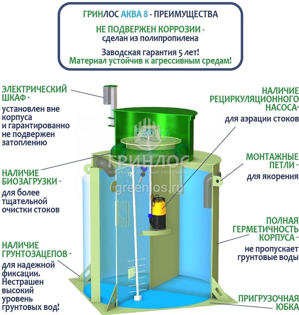 Отличительными особенностями септика ГРИНЛОС Аква 8 являются: