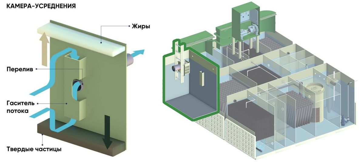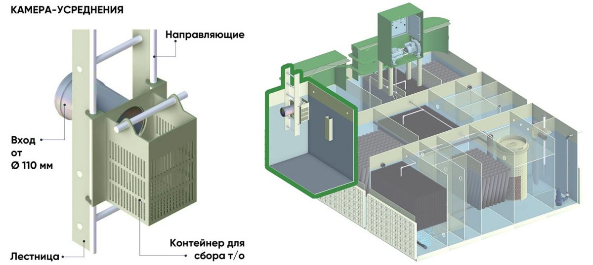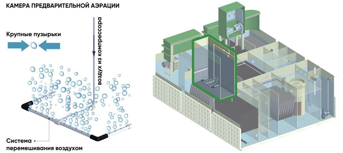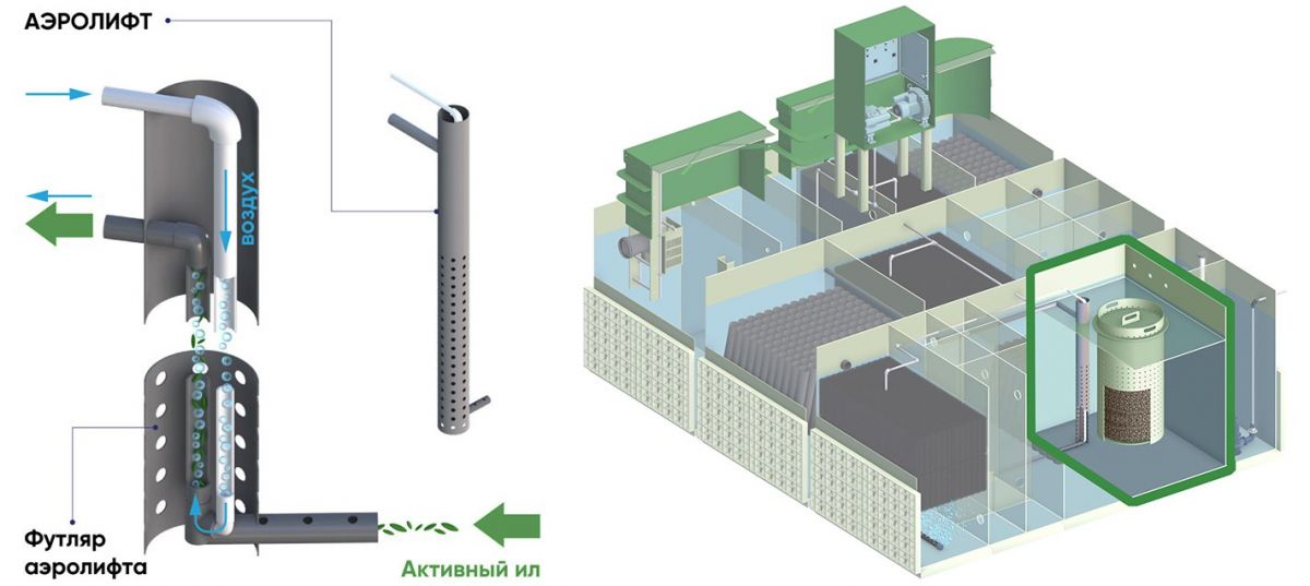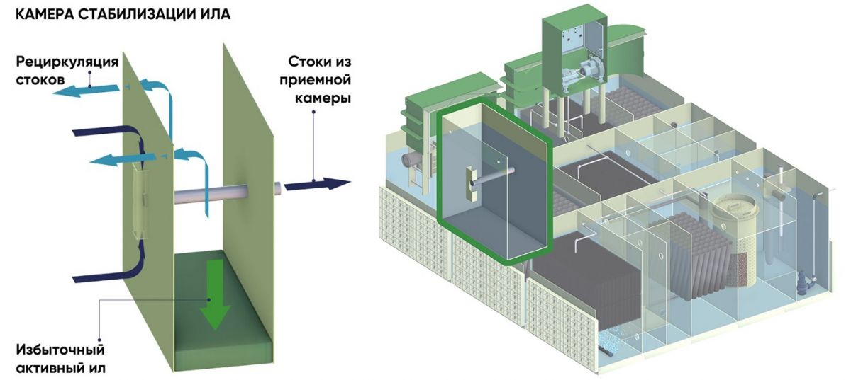 - Система рециркуляции ила — обеспечивает автоматический сбор избыточного активного ила в камеру стабилизации ила.