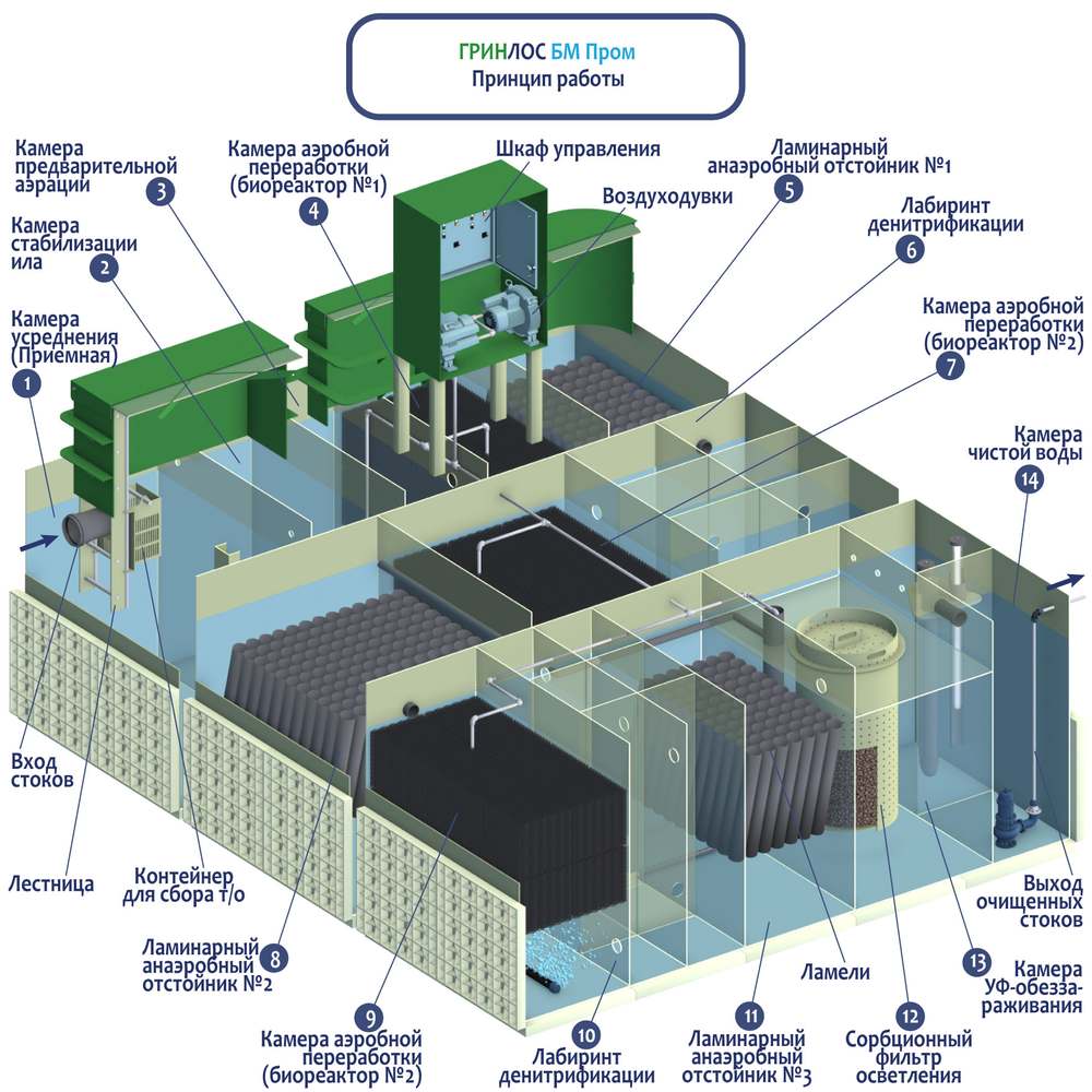 Особенности блочно-модульных очистных сооружений ГРИНЛОС БМ Пром