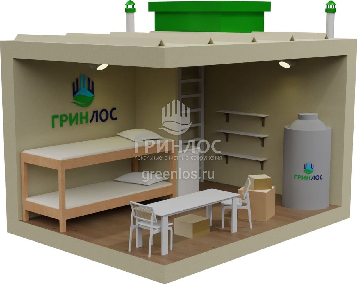 ГРИНЛОС Бункер 3000*2300*2000 скрытно устанавливается под землёй. На территории над ним можно принять меры маскировки — например, высадить газон или возвести постройку.