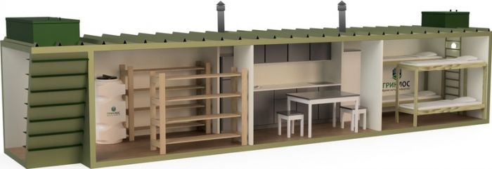 - бытовое оборудование для блока временного укрытия ГРИНЛОС Бункер 6000*2000*2000;