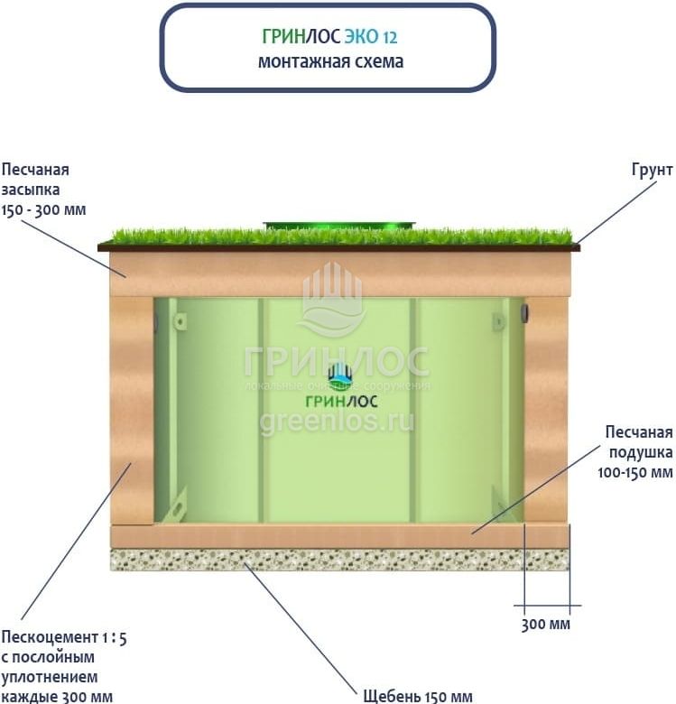 Монтаж септика ГРИНЛОС Эко 12