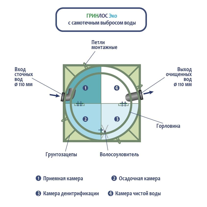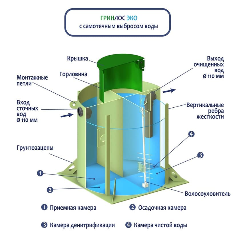 Септики ГРИНЛОС Эко не требуют подключения к электричеству и просты в эксплуатации. Отлично подходят для временного проживания.