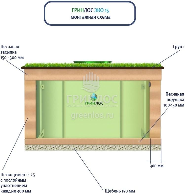 Монтаж септика ГРИНЛОС Эко 15