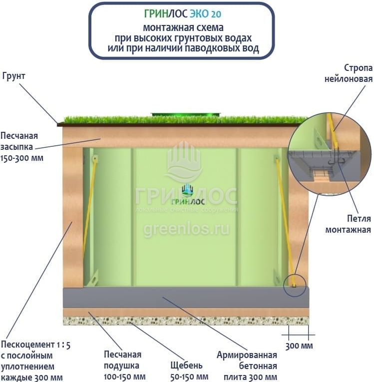 Монтаж септика ГРИНЛОС Эко 20