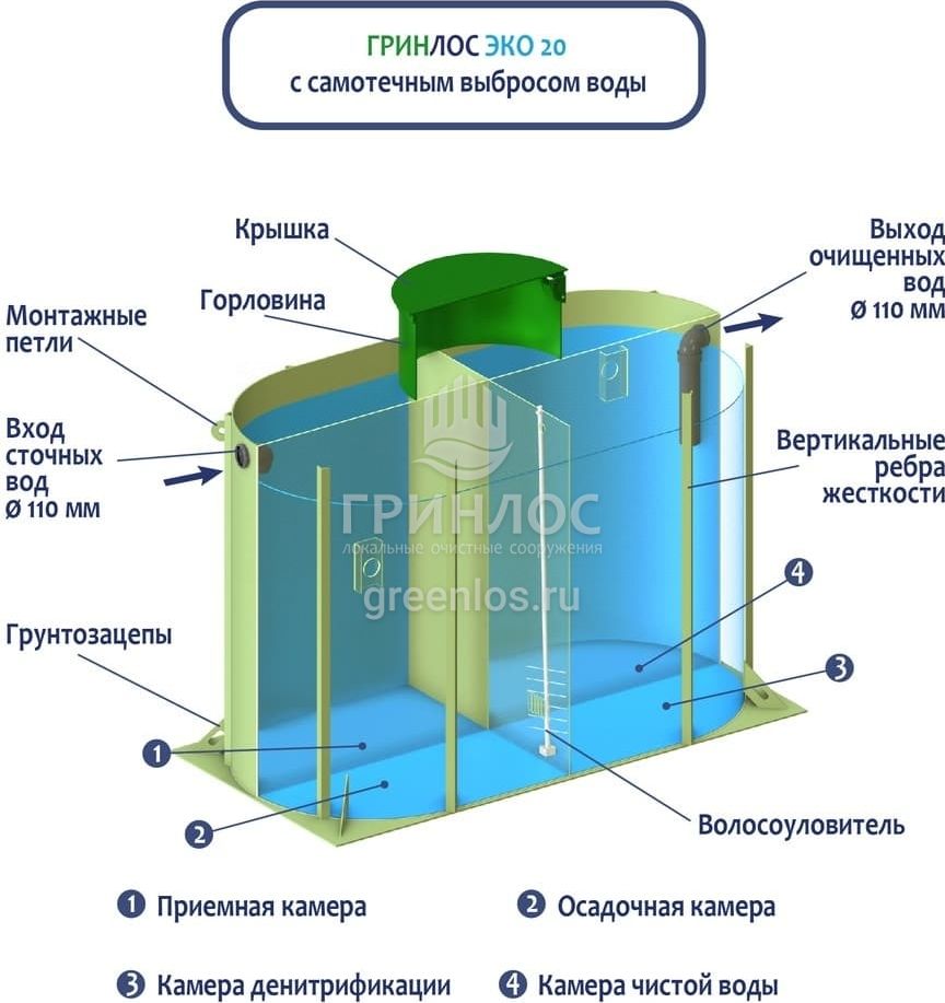 Отличительными особенностями септика ГРИНЛОС Эко 20 являются: