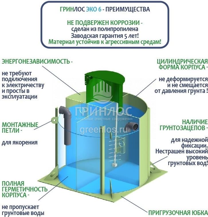 Отличительными особенностями септика ГРИНЛОС Эко 6 являются: