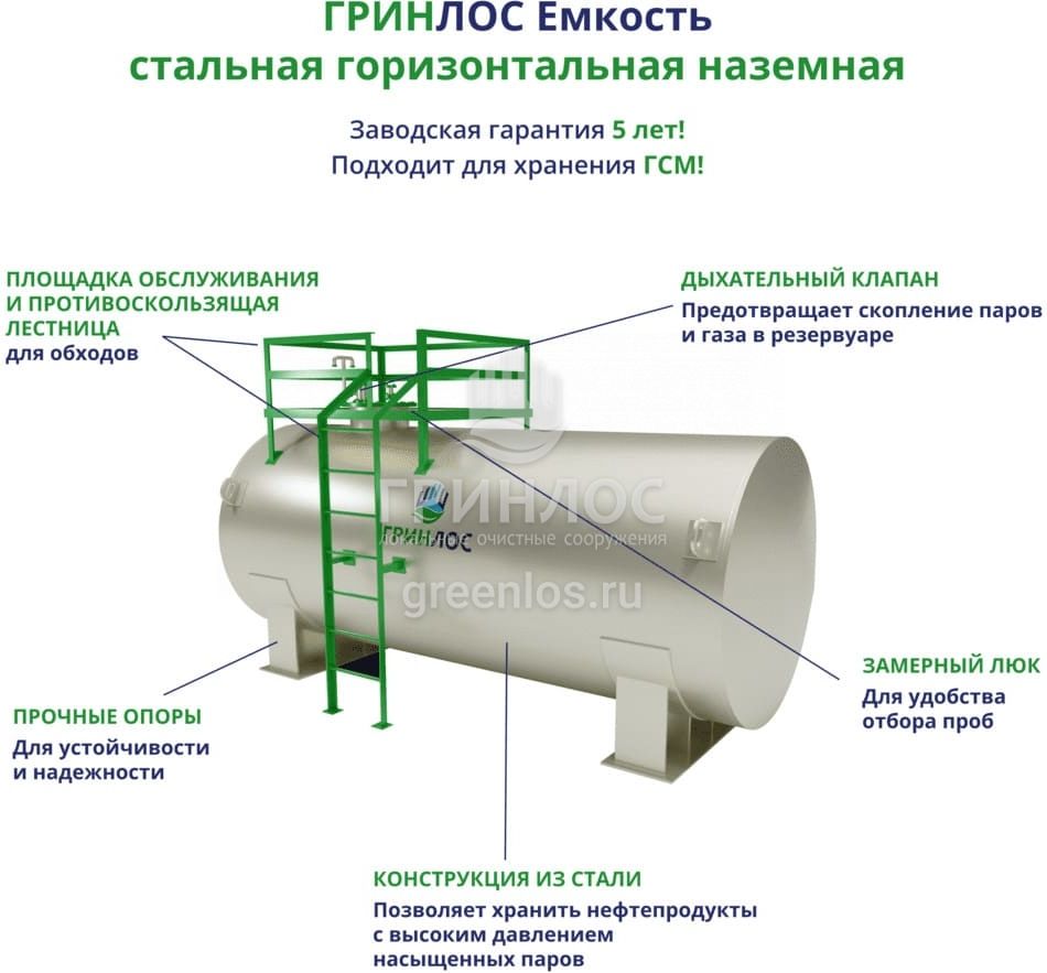 ГРИНЛОС Емкость стальная 10 м3 горизонтальная наземная