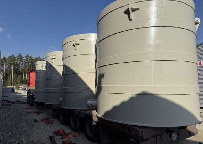 Вертикальные цилиндрические емкости изготавливаются из полипропилена с усилением дна полипропиленовой плитой.