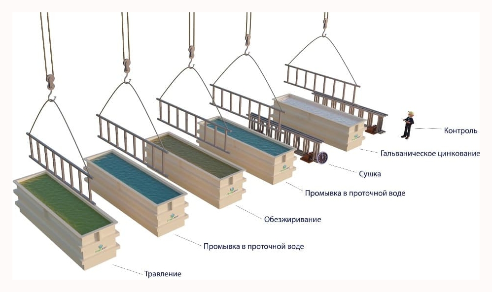 Гальванизация начинается с подготовки деталей, очистки и обработки поверхности, расположения на погружаемой сетке.