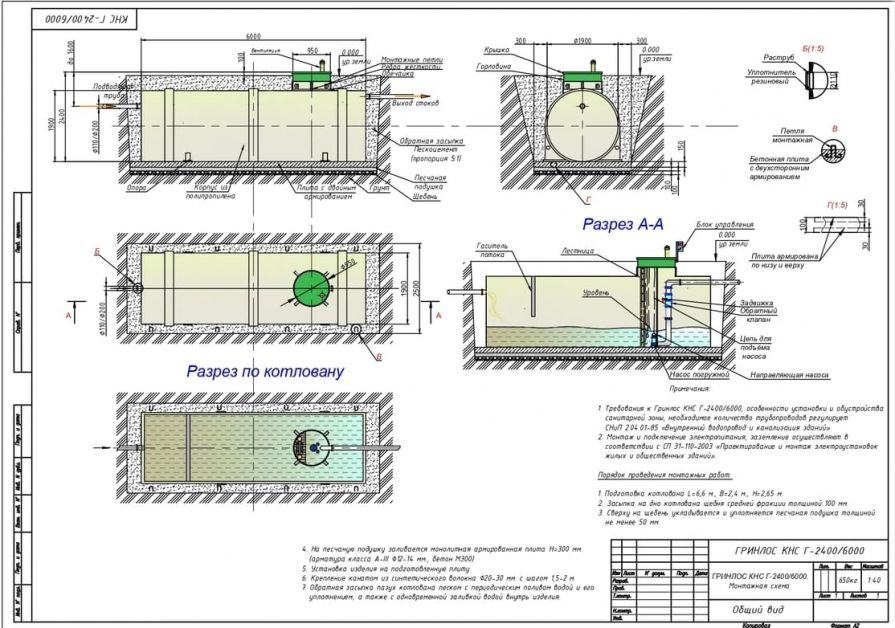 Требования к Гринлос КНС В-2000/1000, особенности установки и обустройства санитарной зоны, необходимое количество трубопроводов регулирует СНиП 2.04.01-85 «Внутренний водопровод и канализация зданий».
