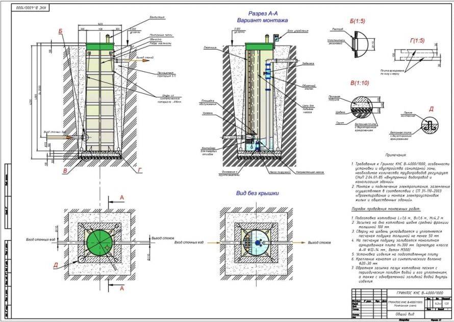 Требования к Гринлос КНС В-2000/1000, особенности установки и обустройства санитарной зоны, необходимое количество трубопроводов регулирует СНиП 2.04.01-85 «Внутренний водопровод и канализация зданий».