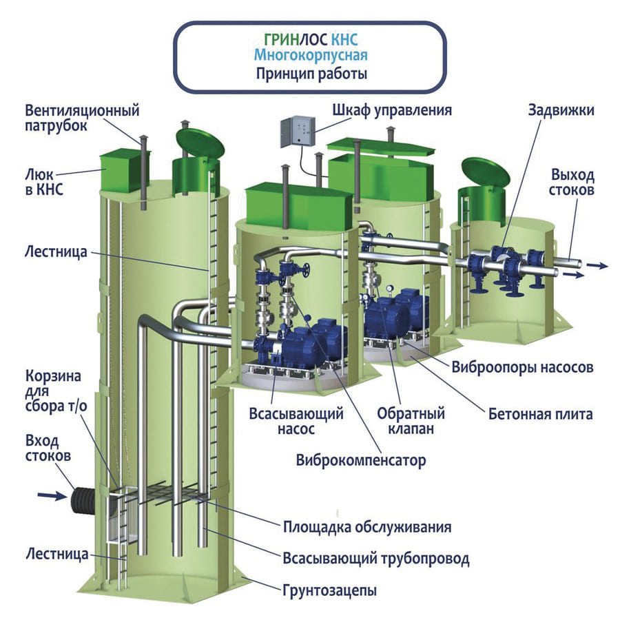 Строгое соблюдение технологии монтажа гарантирует надежную и бесперебойную работу многокорпусной канализационной насосной станции Гринлос на протяжении всего срока эксплуатации.