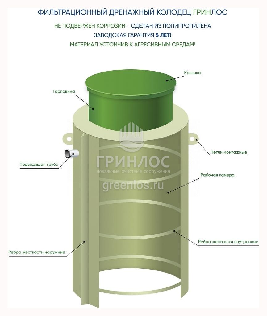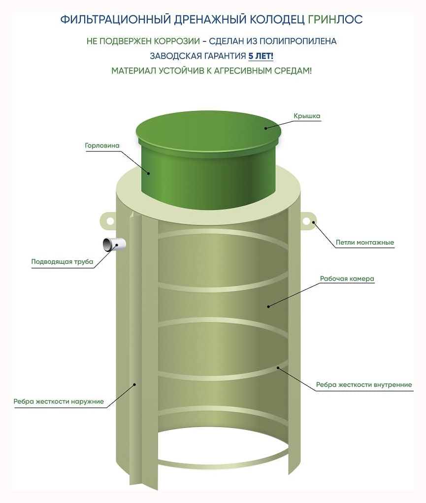Особенности фильтрационного дренажного колодца ГРИНЛОС Колодец ФД 750/2000