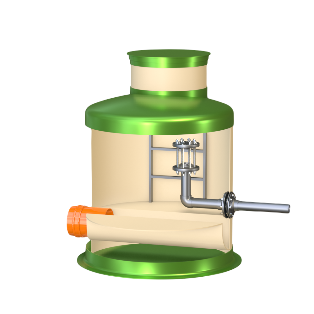 Колодец-гаситель ГРИНЛОС Г 1500/1500 используется для снижения давления перед очистными сооружениями при подаче сточной воды под давлением из аккумулирующего резервуара.