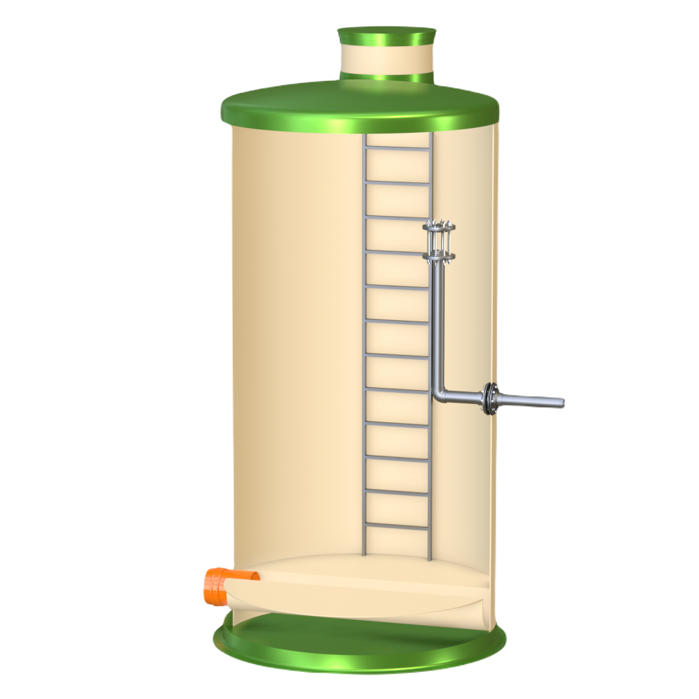 Колодец Гринлос Г 2300/4500 имеет несколько патрубков для подключения трубопроводов различного диаметра. Эти патрубки также изготовлены из стеклопластика и обеспечивают герметичное соединение с внешними трубопроводами. Вместе с тем, они могут быть оборудованы фланцами или специальными манжетами для удобства монтажа.