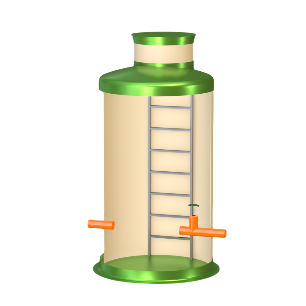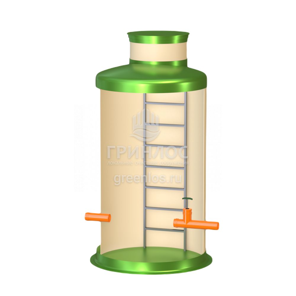 Диаметр модели Кн 1500/2500 составляет 1.5 м, высота – 2.5 м, объем корпуса равен 4.4 м3. Колодец Гринлос Кн 1500/2500 комплектуется патрубками необходимого вам диаметра.