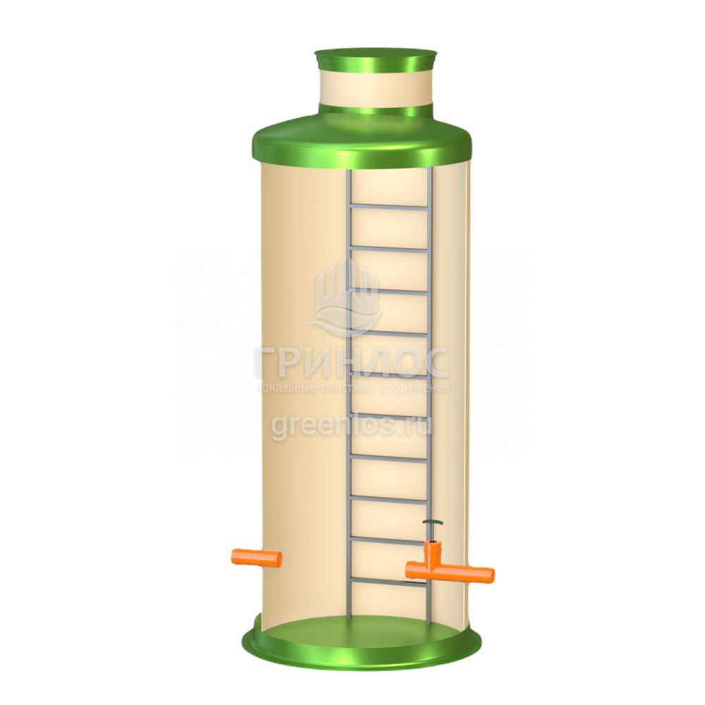 Диаметр модели Кн 1500/3500 составляет 1.5 м, высота – 3.5 м, объем корпуса равен 6.2 м3. Колодец Гринлос Кн 1500/3500 комплектуется патрубками необходимого вам диаметра.