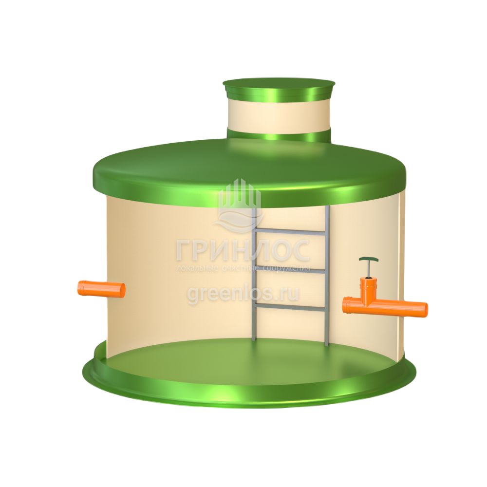 Диаметр модели Кн 2300/1500 составляет 2.3 м, высота – 1.5 м, объем корпуса равен 6.2 м3. Колодец Гринлос Кн 2300/1500 комплектуется патрубками необходимого вам диаметра.