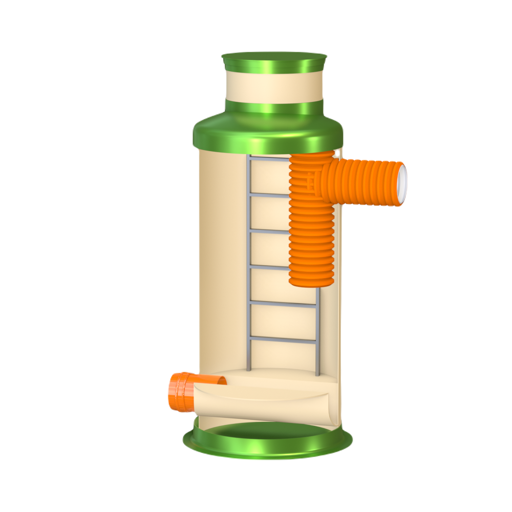 Колодец Гринлос Пп 1200/2500 имеет несколько патрубков для подключения трубопроводов различного диаметра. Эти патрубки также изготовлены из стеклопластика и обеспечивают герметичное соединение с внешними трубопроводами. Вместе с тем, они могут быть оборудованы фланцами или специальными манжетами для удобства монтажа.