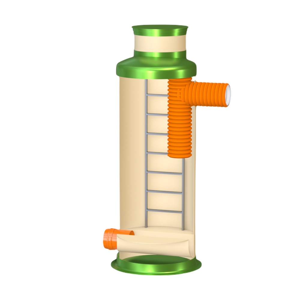 Перепадный колодец ГРИНЛОС Пп 1200/3000 представляет собой современное и надежное решение для различных инженерных сетей. Его внутреннее устройство разработано для обеспечения максимальной функциональности, герметичности и долговечности при эксплуатации. Основные элементы перепадного канализационного колодца Гринлос Пп 1200/3000: