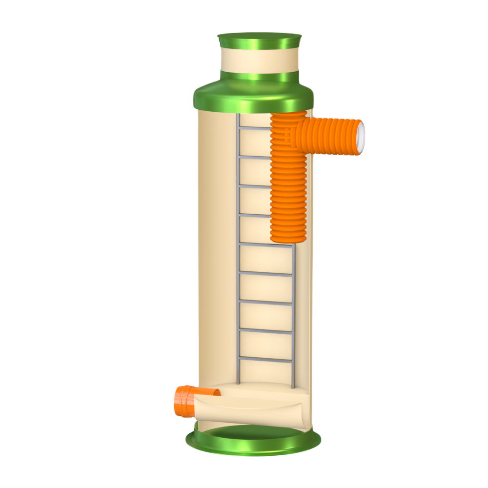 Перепадный колодец ГРИНЛОС Пп 1200/3500 представляет собой современное и надежное решение для различных инженерных сетей. Его внутреннее устройство разработано для обеспечения максимальной функциональности, герметичности и долговечности при эксплуатации. Основные элементы перепадного канализационного колодца Гринлос Пп 1200/3500: