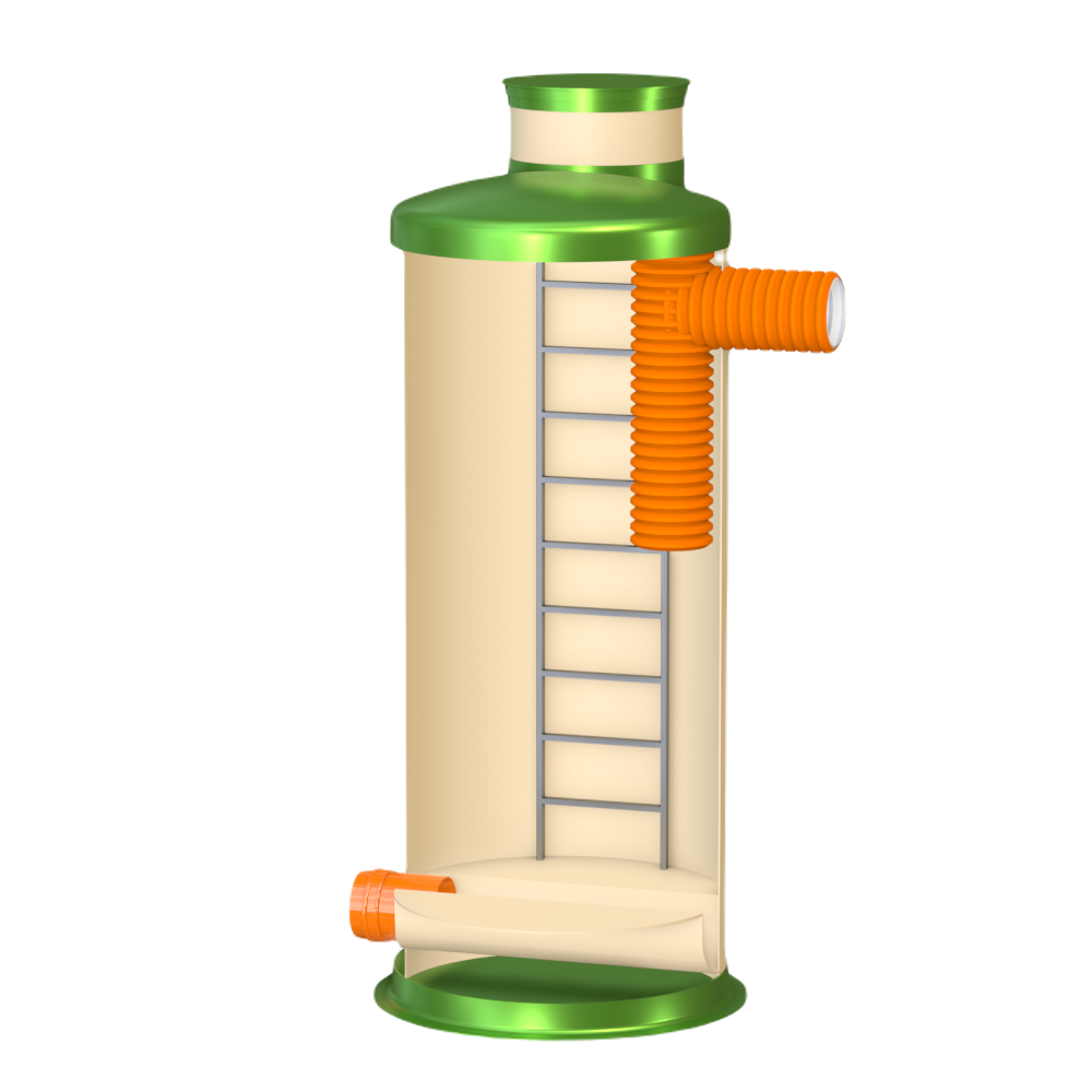Перепадный колодец ГРИНЛОС Пп 1500/3500 представляет собой современное и надежное решение для различных инженерных сетей. Его внутреннее устройство разработано для обеспечения максимальной функциональности, герметичности и долговечности при эксплуатации. Основные элементы перепадного канализационного колодца Гринлос Пп 1500/3500: