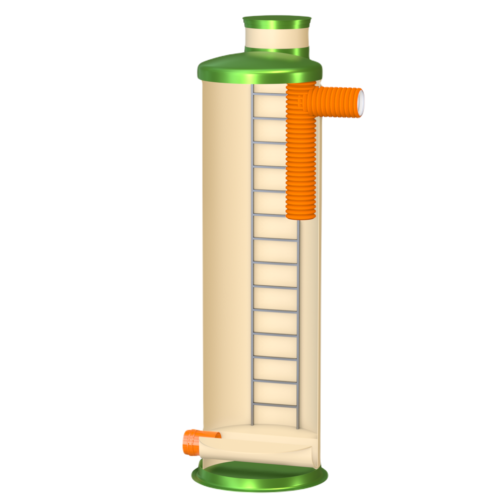 Перепадный колодец ГРИНЛОС Пп 1500/5000 устанавливается на коллекторах дождевой канализации. Такой колодец применяется в ситуациях, когда необходимо обойти подземные коммуникации или снизить скорость потока из-за значительного уклона сети.