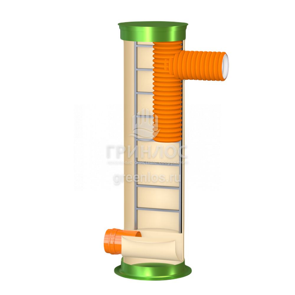 Перепадный колодец ГРИНЛОС Пп 800/3000 представляет собой современное и надежное решение для различных инженерных сетей. Его внутреннее устройство разработано для обеспечения максимальной функциональности, герметичности и долговечности при эксплуатации. Основные элементы перепадного канализационного колодца Гринлос Пп 800/3000: