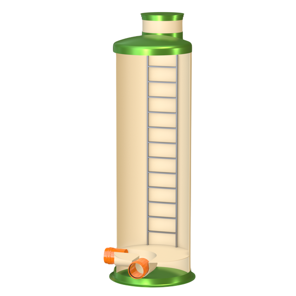 Колодец Гринлос Пв 1500/4500 имеет несколько патрубков для подключения трубопроводов различного диаметра. Эти патрубки также изготовлены из стеклопластика и обеспечивают герметичное соединение с внешними трубопроводами. Вместе с тем, они могут быть оборудованы фланцами или специальными манжетами для удобства монтажа.
