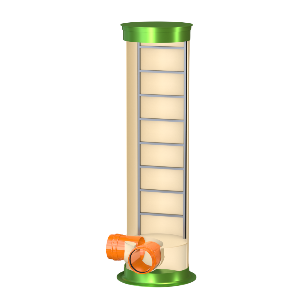 Колодец Гринлос Пв 800/3000 имеет несколько патрубков для подключения трубопроводов различного диаметра. Эти патрубки также изготовлены из стеклопластика и обеспечивают герметичное соединение с внешними трубопроводами. Вместе с тем, они могут быть оборудованы фланцами или специальными манжетами для удобства монтажа.