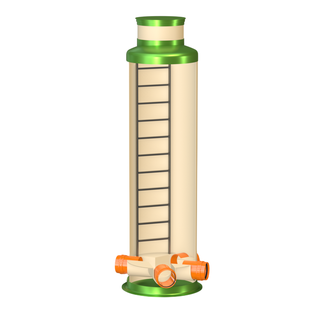 Узловой колодец ГРИНЛОС У 1200/4000 представляет собой современное и надежное решение для различных инженерных сетей. Его внутреннее устройство разработано для обеспечения максимальной функциональности, герметичности и долговечности при эксплуатации. Основные элементы узлового колодца Гринлос У 1200/4000: