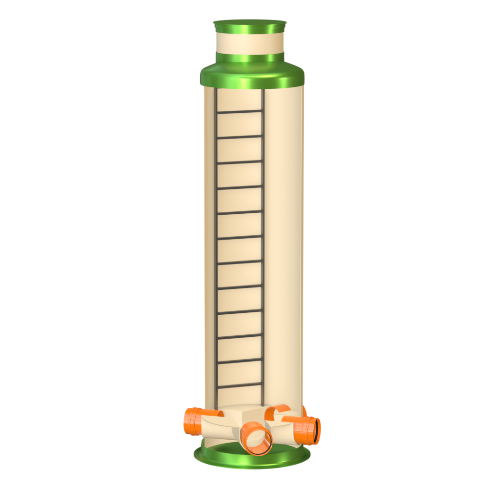 Узловой колодец ГРИНЛОС У 1200/4500 представляет собой современное и надежное решение для различных инженерных сетей. Его внутреннее устройство разработано для обеспечения максимальной функциональности, герметичности и долговечности при эксплуатации. Основные элементы узлового колодца Гринлос У 1200/4500: