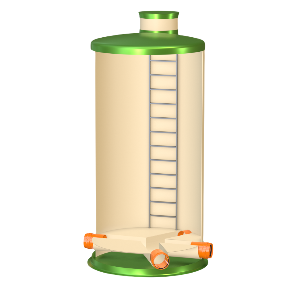 Узловой колодец ГРИНЛОС У 2300/4500 устанавливается в местах соединения различных потоков. Такие колодцы могут выполнять функции как поворотных, так и перепадных колодцев одновременно. Чаще всего узловой колодец используется в качестве распределительного в системах очистных сооружений, которые состоят из нескольких модулей, для равномерного распределения потока между этими модулями.