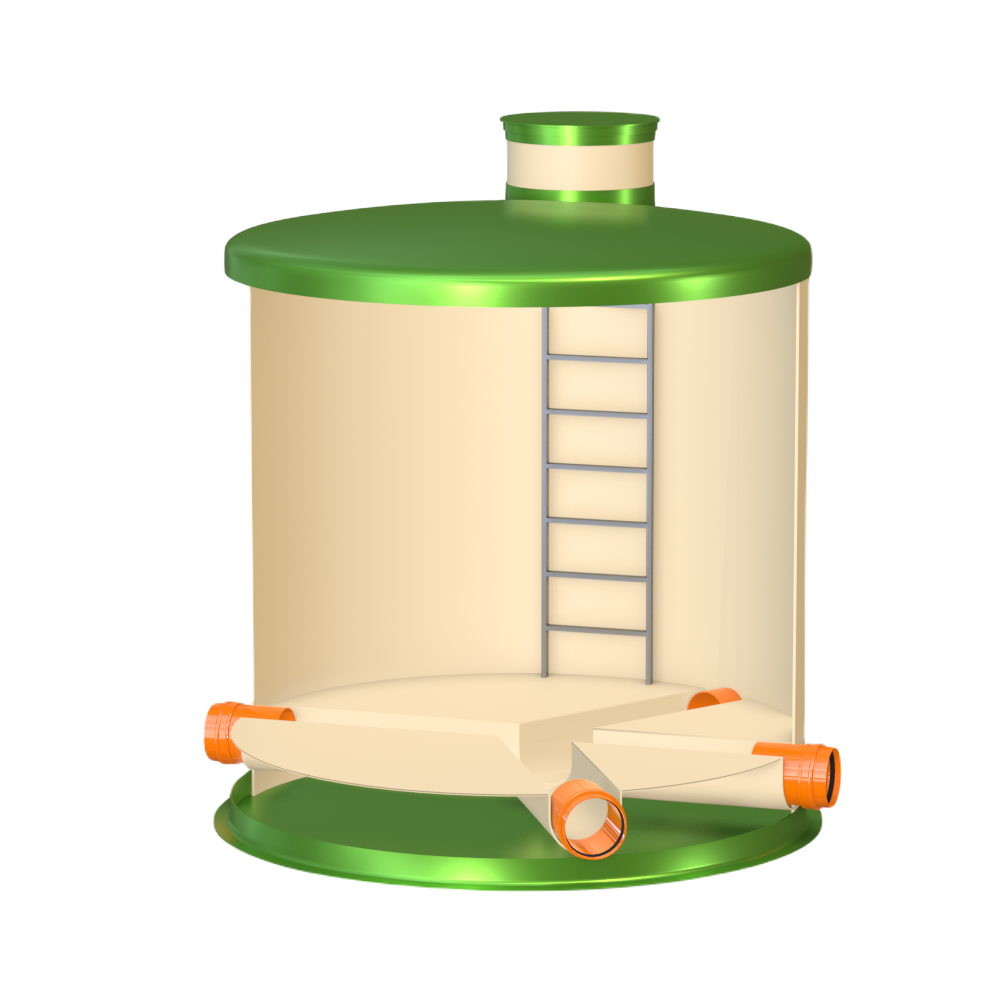 Узловой колодец ГРИНЛОС У 3000/3000 устанавливается в местах соединения различных потоков. Такие колодцы могут выполнять функции как поворотных, так и перепадных колодцев одновременно. Чаще всего узловой колодец используется в качестве распределительного в системах очистных сооружений, которые состоят из нескольких модулей, для равномерного распределения потока между этими модулями.