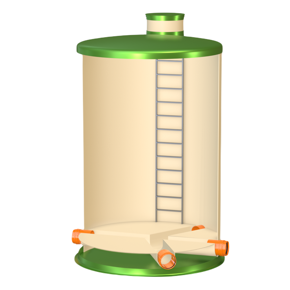 Узловой колодец ГРИНЛОС У 3000/4500 устанавливается в местах соединения различных потоков. Такие колодцы могут выполнять функции как поворотных, так и перепадных колодцев одновременно. Чаще всего узловой колодец используется в качестве распределительного в системах очистных сооружений, которые состоят из нескольких модулей, для равномерного распределения потока между этими модулями.