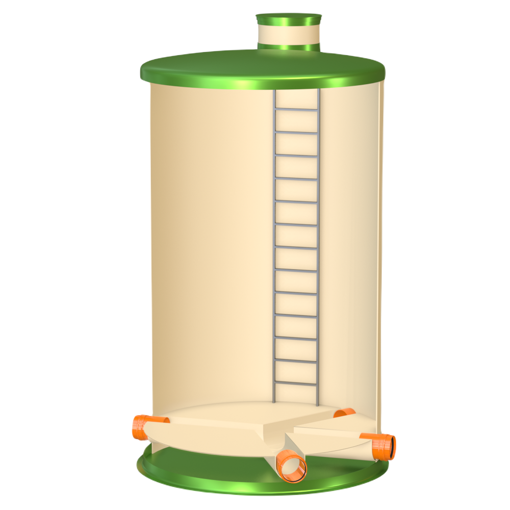 Узловой колодец ГРИНЛОС У 3000/5000 устанавливается в местах соединения различных потоков. Такие колодцы могут выполнять функции как поворотных, так и перепадных колодцев одновременно. Чаще всего узловой колодец используется в качестве распределительного в системах очистных сооружений, которые состоят из нескольких модулей, для равномерного распределения потока между этими модулями.