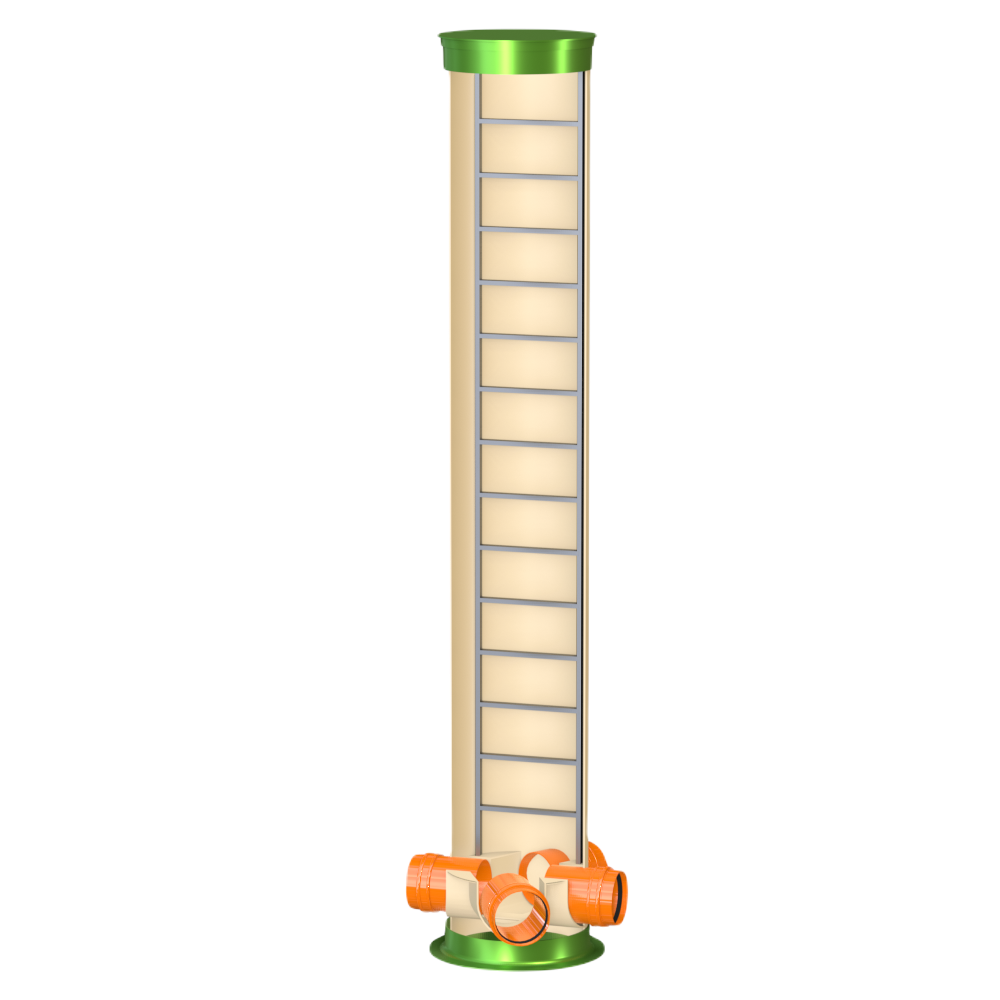 Узловой колодец ГРИНЛОС У 800/5000 устанавливается в местах соединения различных потоков. Такие колодцы могут выполнять функции как поворотных, так и перепадных колодцев одновременно. Чаще всего узловой колодец используется в качестве распределительного в системах очистных сооружений, которые состоят из нескольких модулей, для равномерного распределения потока между этими модулями.