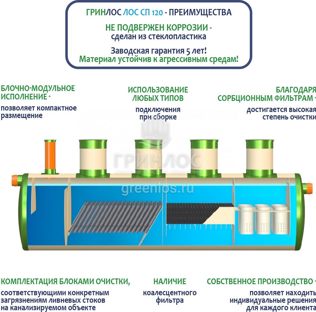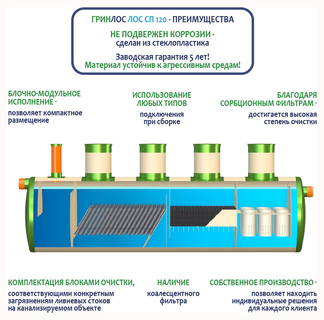 Гринлос ЛК 120-2300 Сп выполнена из стеклопластика – инертного материала, устойчивого к агрессивным средам.