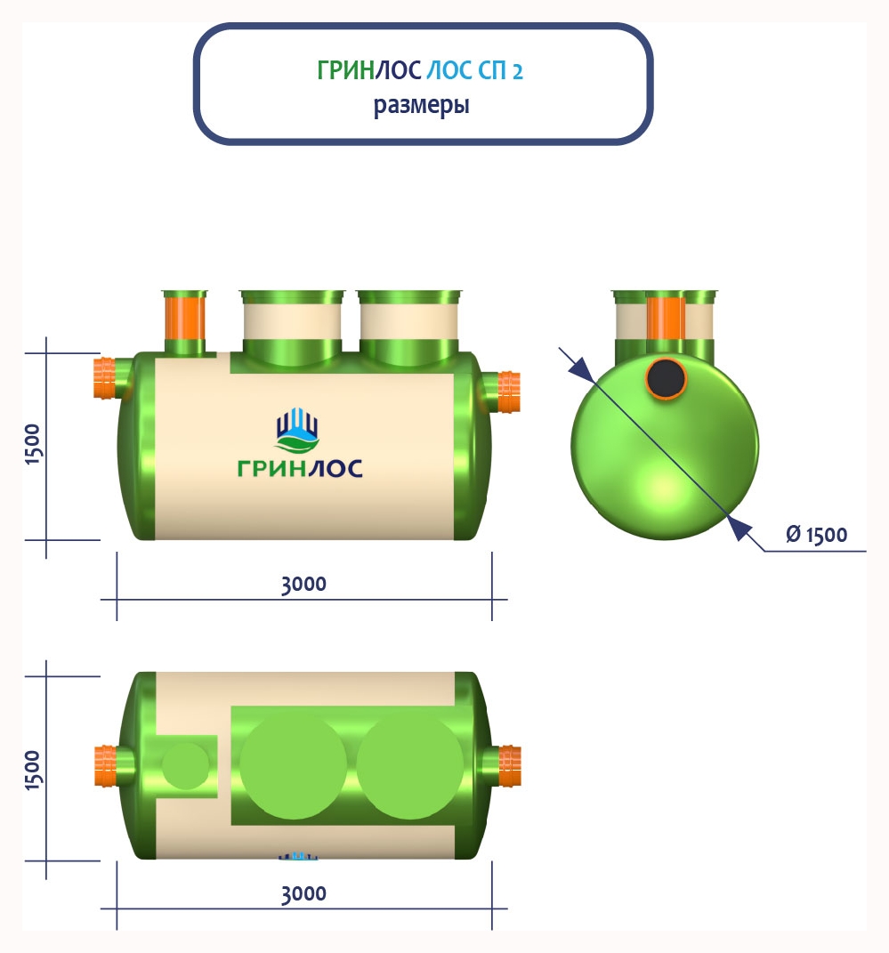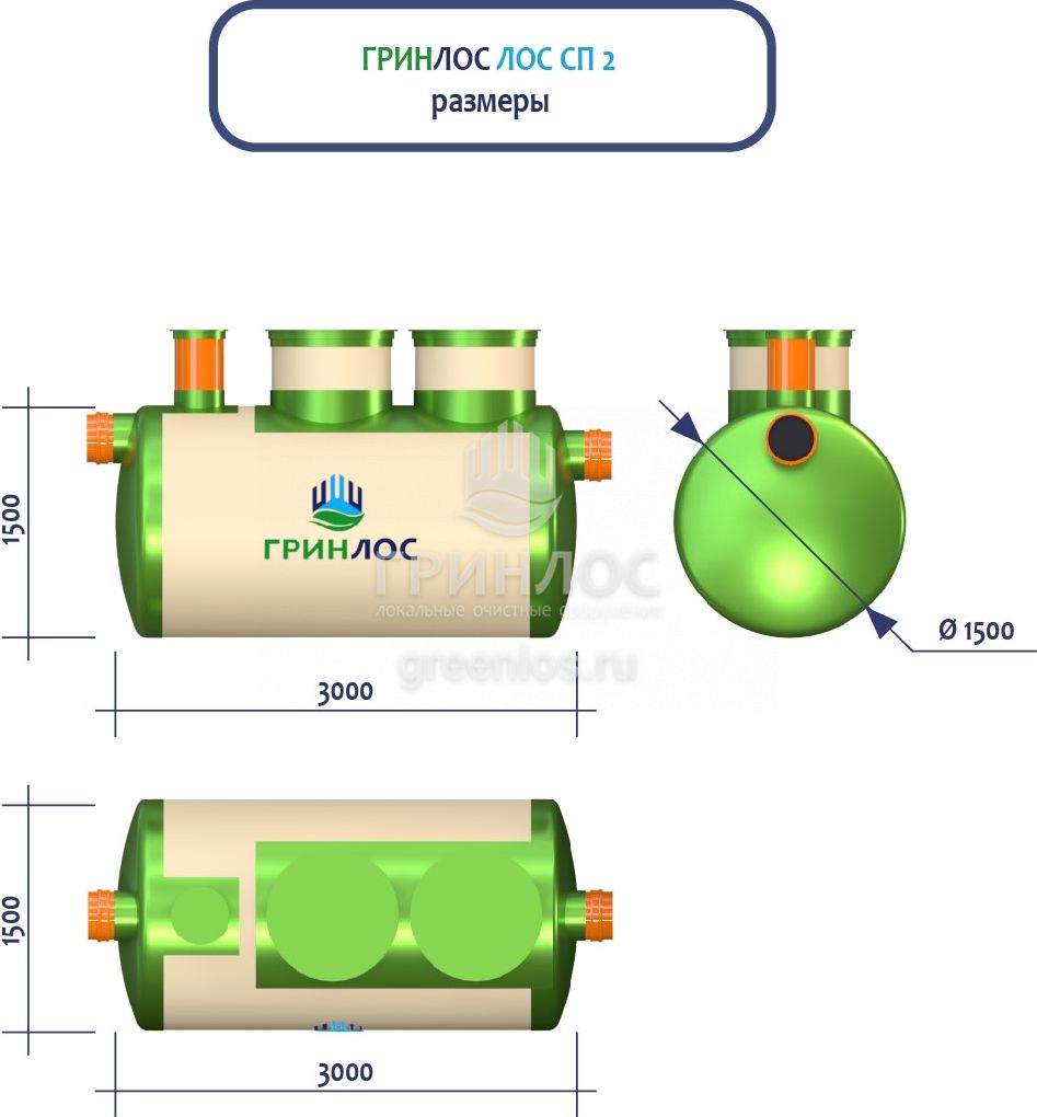 ГРИНЛОС Ливневая канализация 2-1500 стеклопластиковая представляет собой очистное сооружение ливневых стоков габаритами 3000*1500*1500 - 1 корпус. Общий объем корпусов составляет 5.3 м3. Для установки станции потребуется применение вспомогательного оборудования.