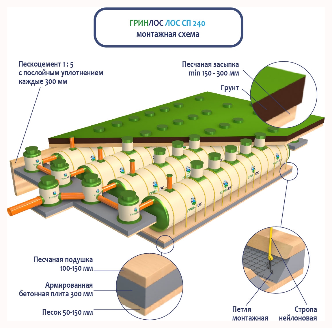 Монтаж ГРИНЛОС Ливневая канализация 240-2300 стеклопластиковая