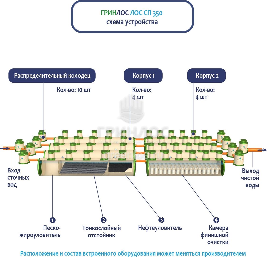 В базовую комплектацию Ливневой канализации Гринлос входит нефтеловушка, которая работает по принципу отстаивания стоков