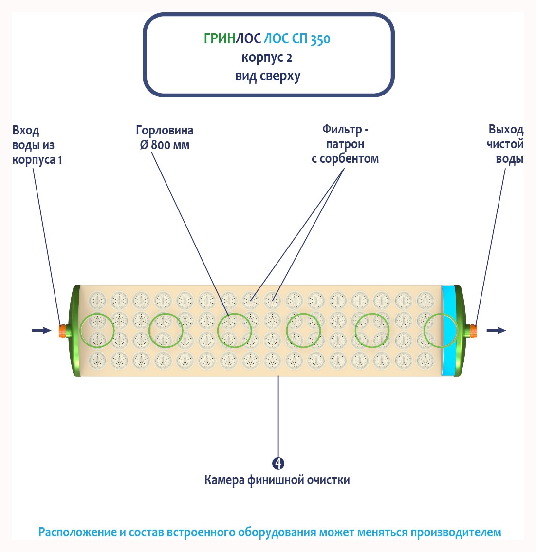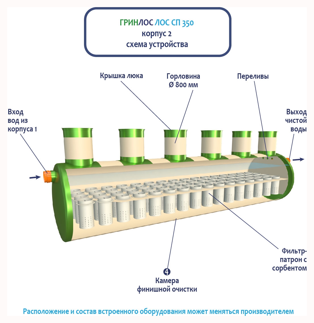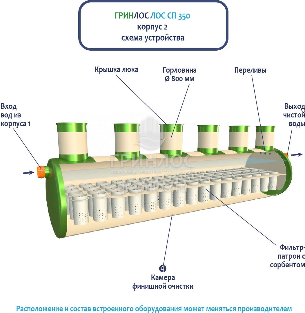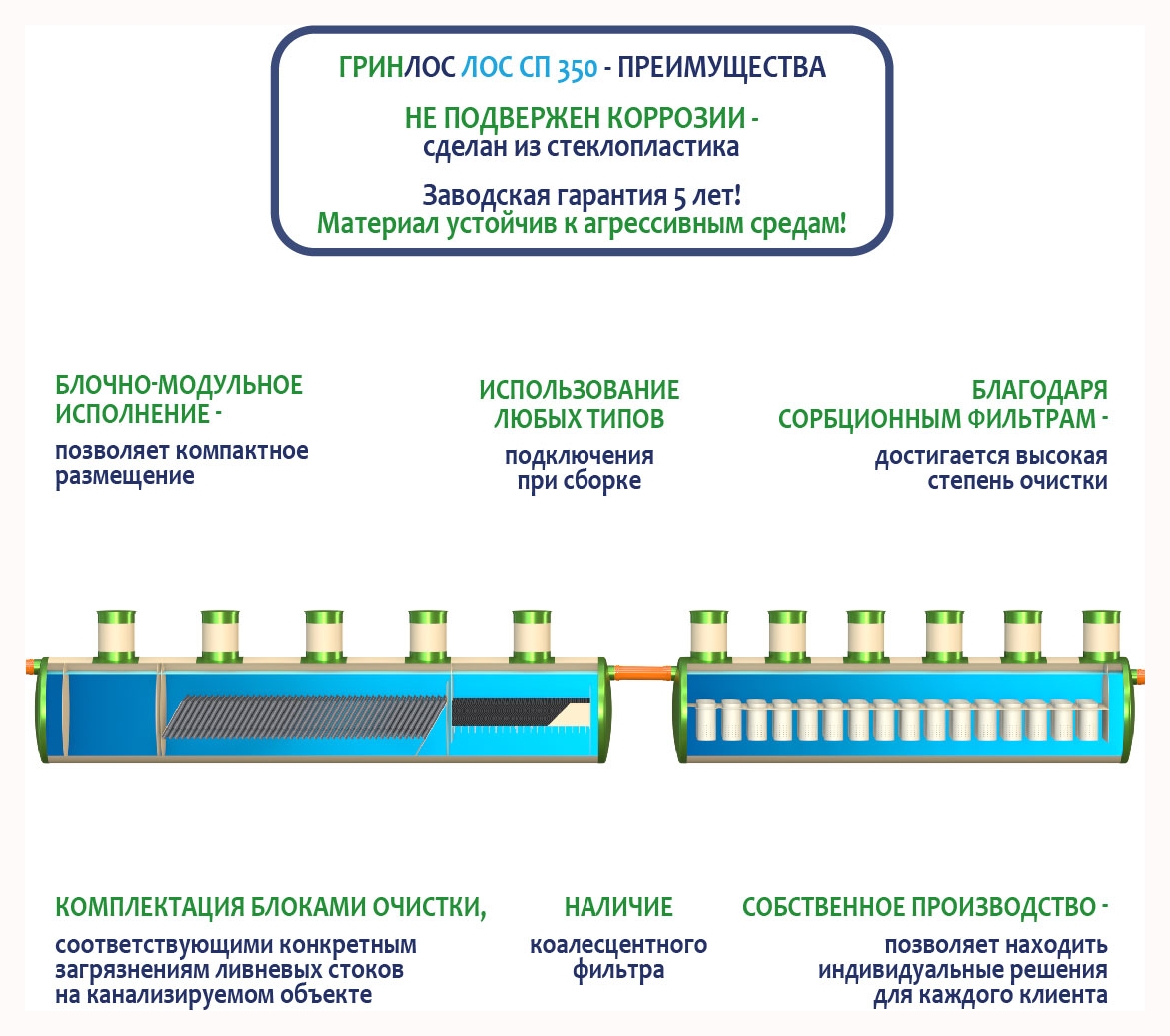 Гринлос ЛК 350-2300 Сп выполнена из стеклопластика – инертного материала, устойчивого к агрессивным средам.