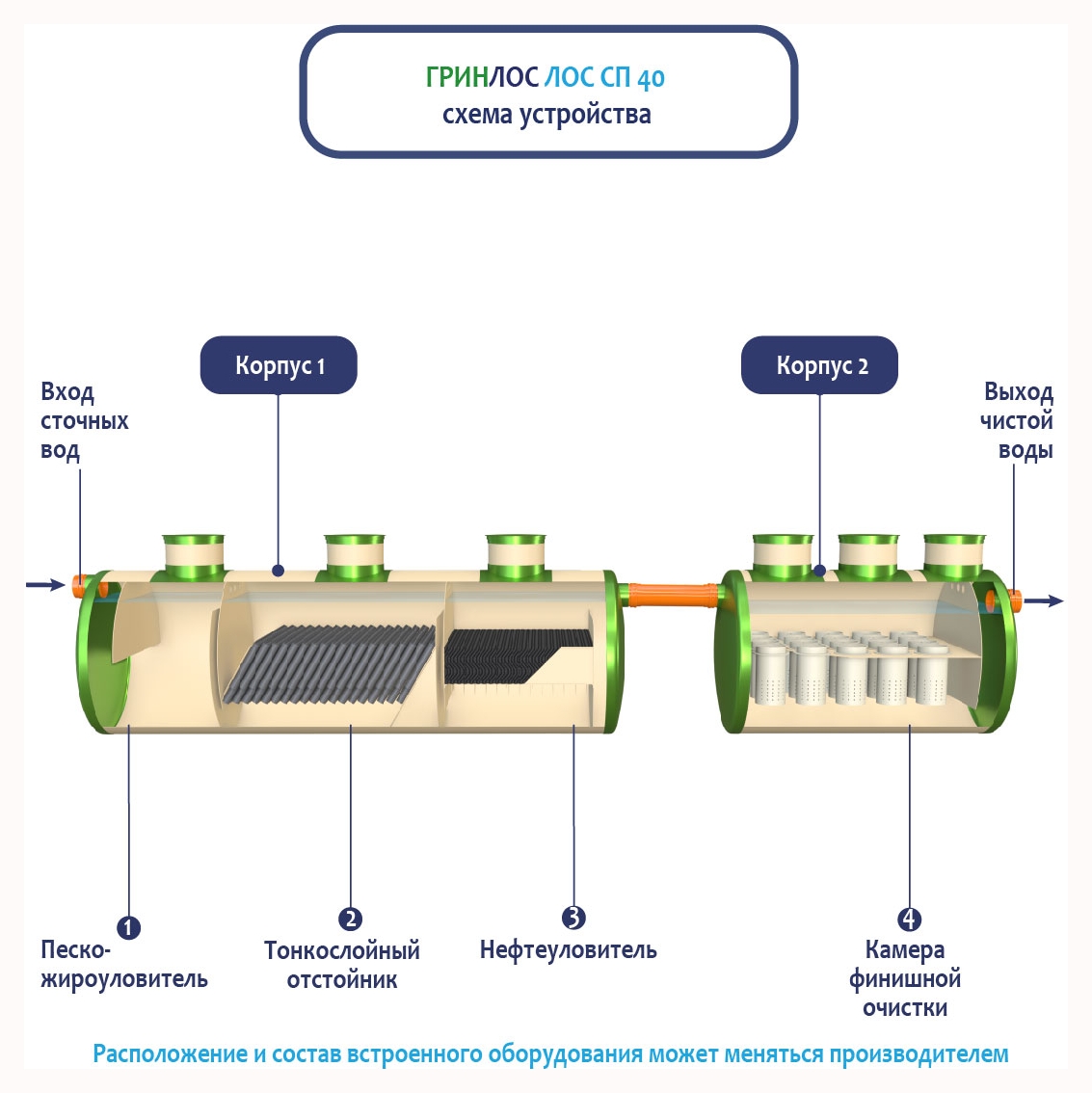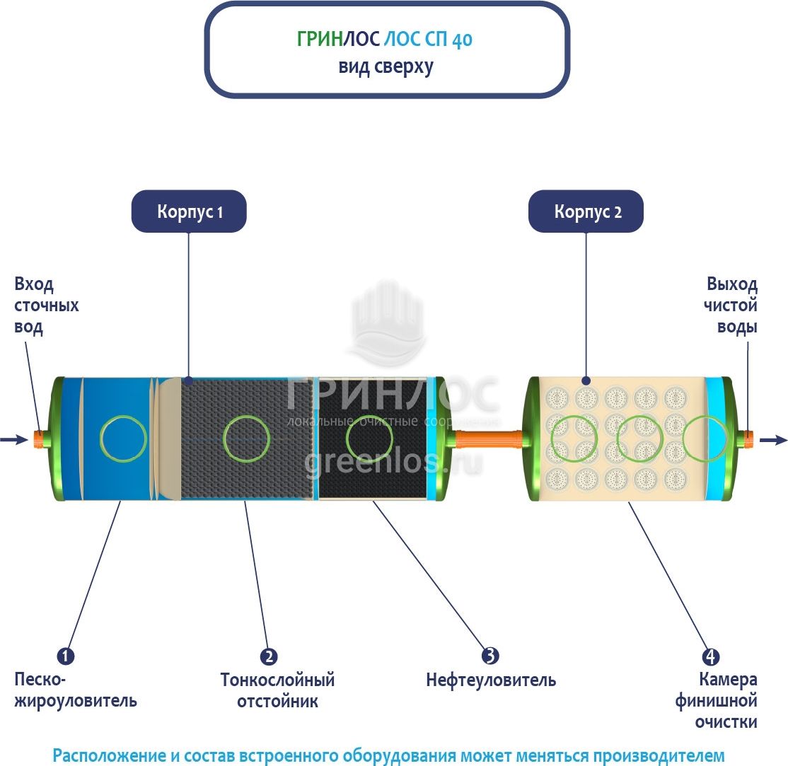В базовую комплектацию Ливневой канализации Гринлос входит нефтеловушка, которая работает по принципу отстаивания стоков