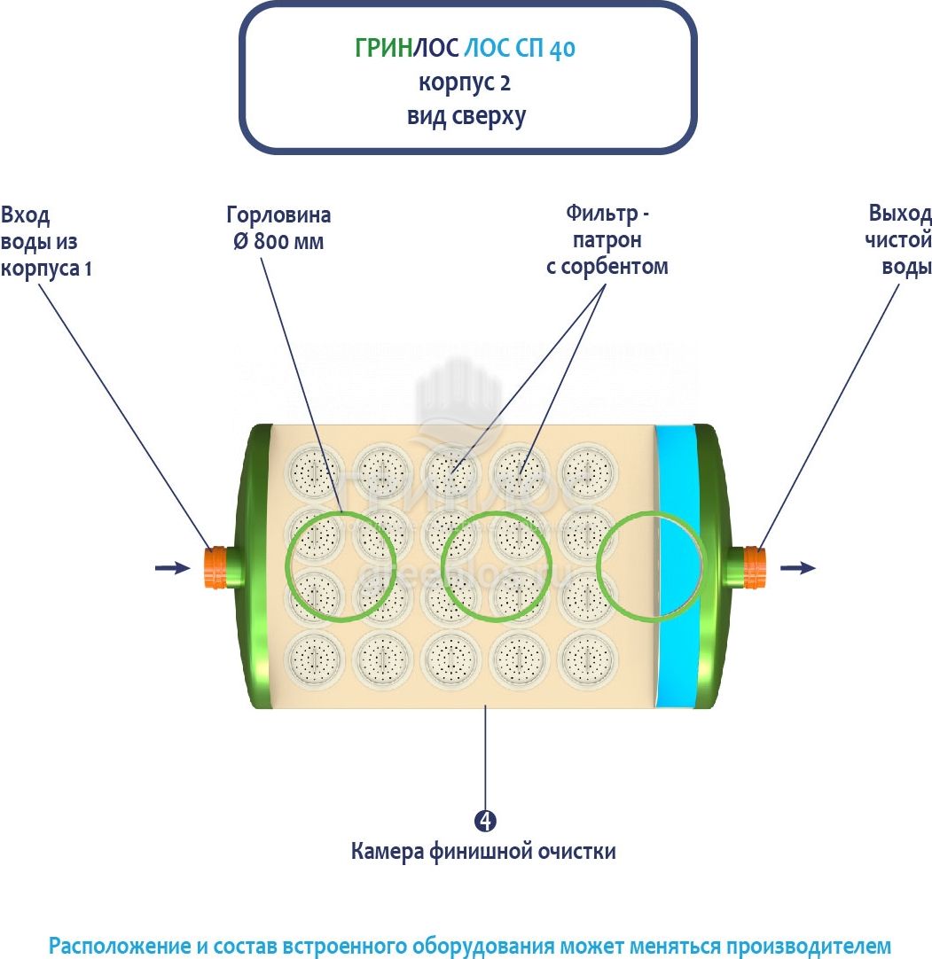 Гринлос ГРИНЛОС Ливневая канализация 40-2300-2 стеклопластиковая - Внутреннее устройство корпусов 1 и 2, вид сверху