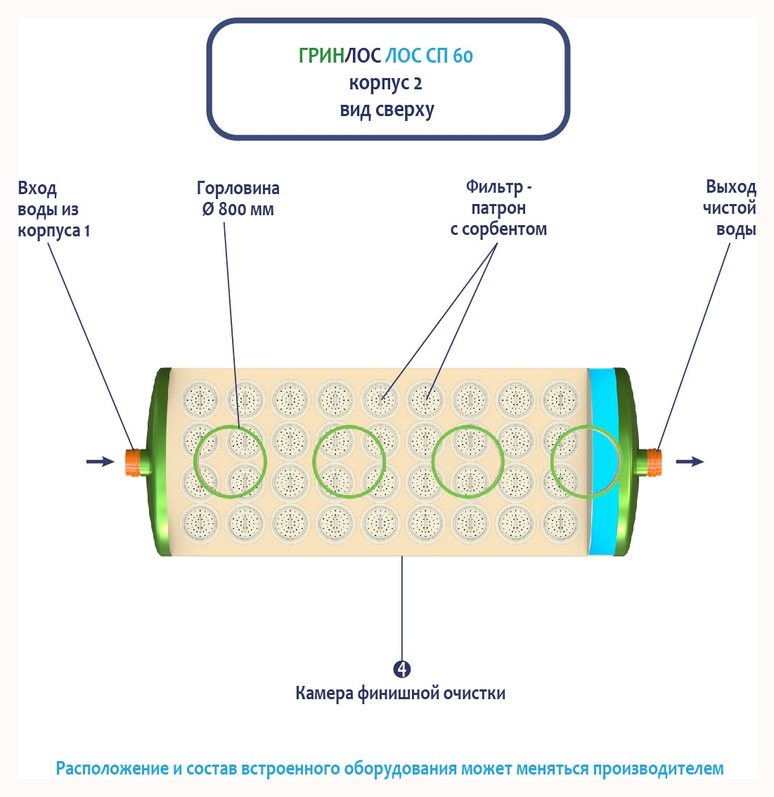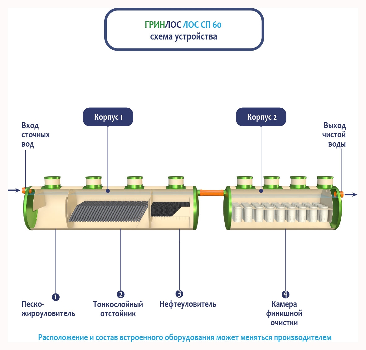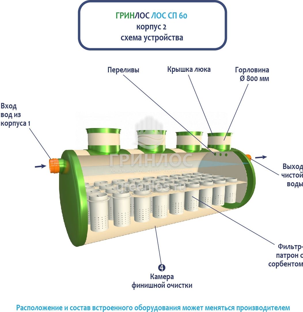 Гринлос ЛК 60-2300 Сп выполнена из стеклопластика – инертного материала, устойчивого к агрессивным средам.