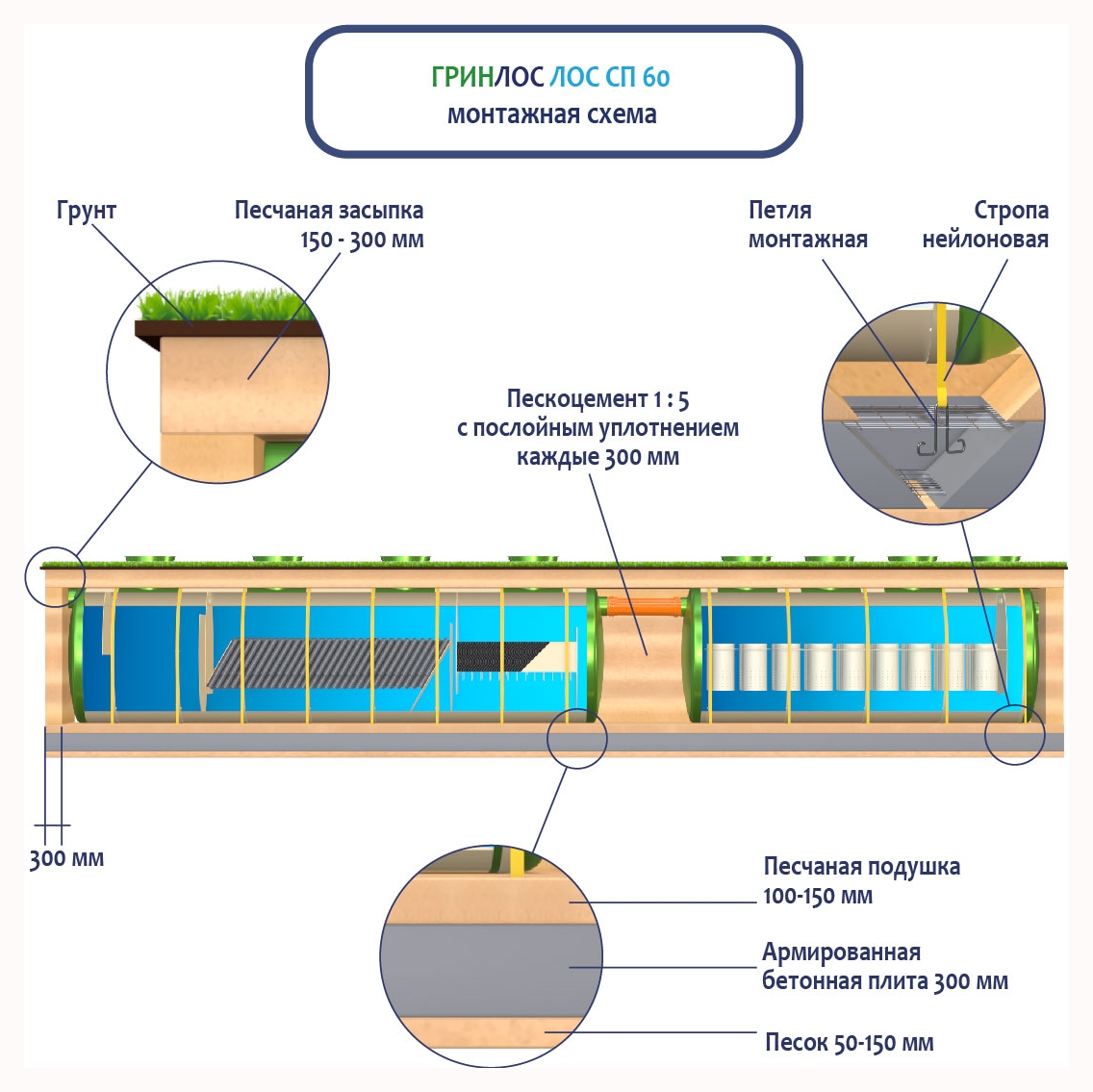 Монтаж ГРИНЛОС Ливневая канализация 60-2300 стеклопластиковая